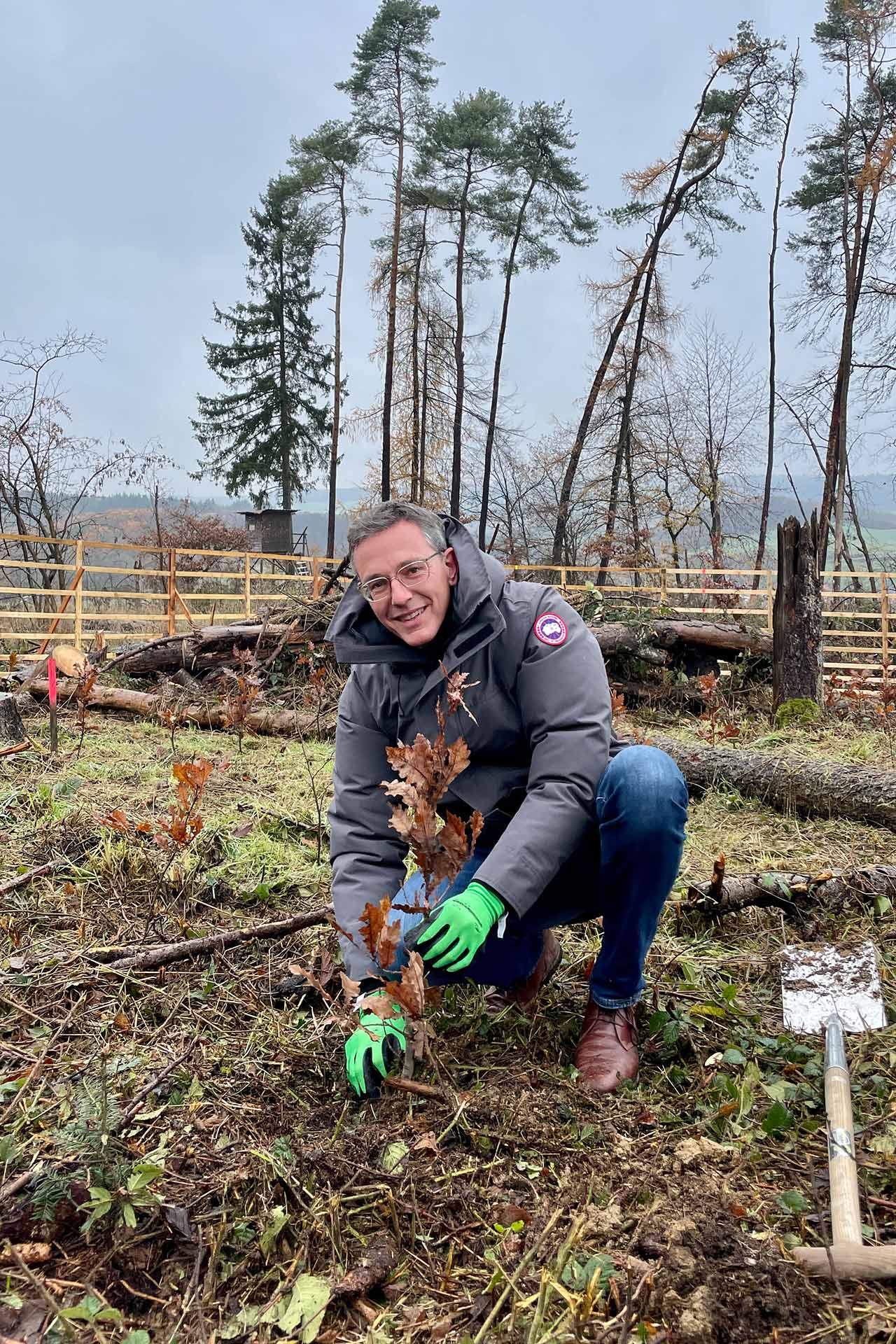 Auf ca. 6 Hektar brach liegender Waldfläche entsteht somit ein neuer heimischer Mischwald, der grob gerechnet ausgewachsen ca. 36t CO2 pro Jahr bindet. Zum Vergleich: Auf jeden deutschen Bürger kommen aktuell ca. 11t CO2 pro Jahr – somit wären 3,3 Menschen durch dieses Waldstück CO2-neutral.