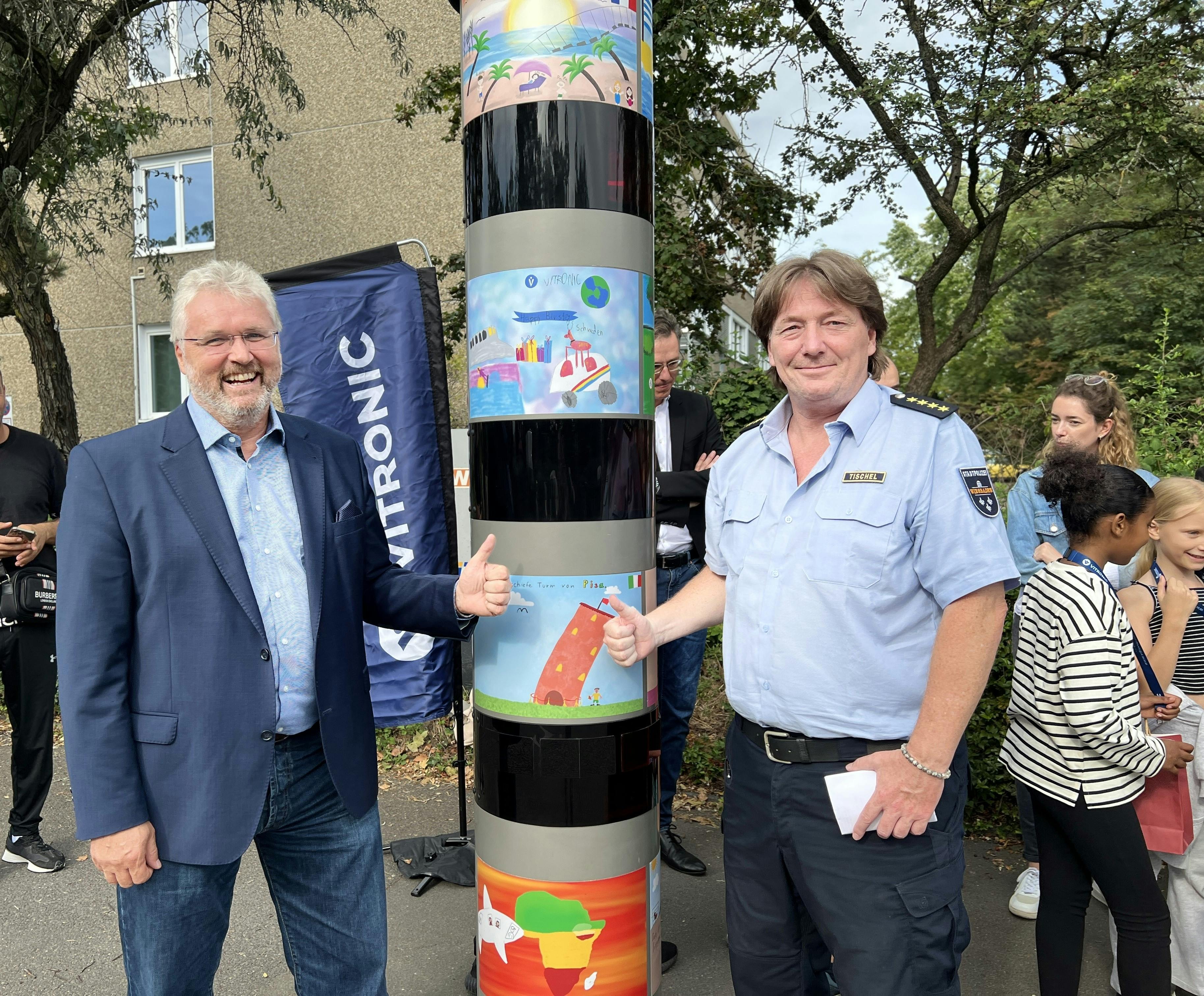 Kinder wurden eingeladen, ihrer Kreativität freien Lauf zu lassen und zu zeigen, wie ihr Sommerurlaub aussieht. Die schönsten Beiträge wurden auf einer echten Blitzer-Säule in Wiesbaden präsentiert und verschönern die Säule in Wiesbaden am Konrad-Adenauer-Ring direkt vor einer großen Turnhalle, die von mehreren Schulen und Vereinen genutzt wird.