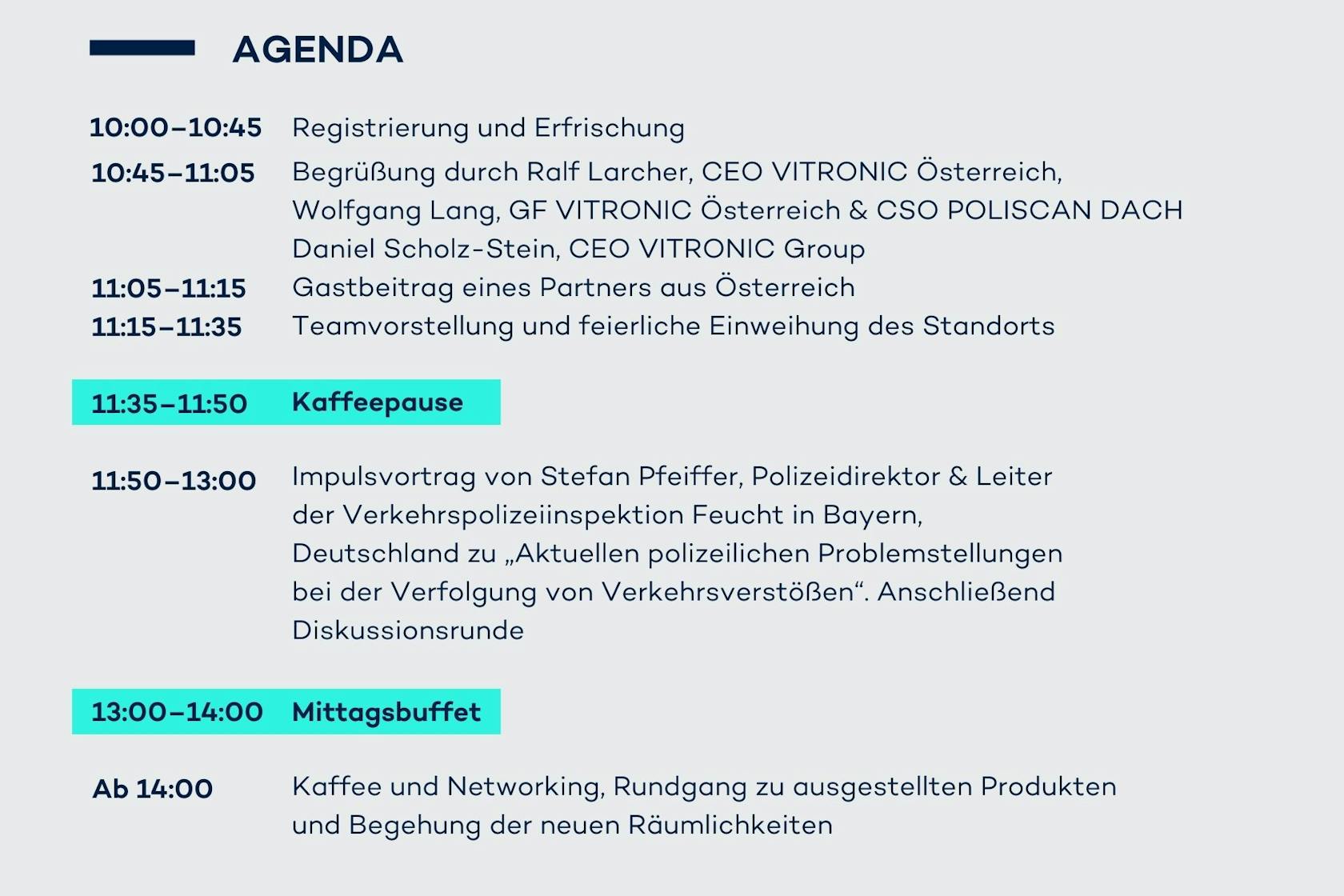 Um schriftliche Anmeldung wird gebeten. Sie können diese an andrea.bayerl@vitronic.com richten oder uns unter +43 664 7816 0870 kontaktieren.