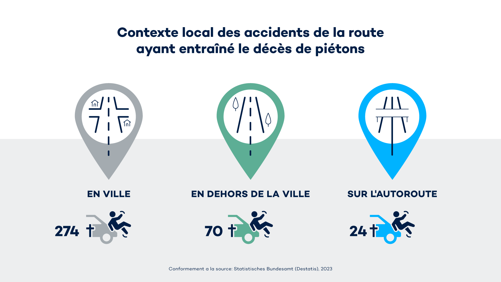 Près de la moitié des personnes tuées et gravement blessées sur la route sont des usagers de la route vulnérables. Dans les villes, ce chiffre s'élève même à 70 %. Selon des études menées par l'Office fédéral allemand des statistiques, 4651 piétons au total ont été gravement blessés en 2021 en Allemagne ; plus de 343 personnes ont été tuées. Les passages pour piétons sont des zones particulièrement dangereuses. Plus de 10 000 accidents surviennent au niveau de ces points de trafic. Mais les piétons ne sont pas les seuls à avoir besoin d'une meilleure protection, les cyclistes aussi sont particulièrement exposés aux risques. Selon l'Office fédéral allemand des statistiques, près de 98 000 cyclistes au total ont été blessés et 474 ont été tués en 2021.