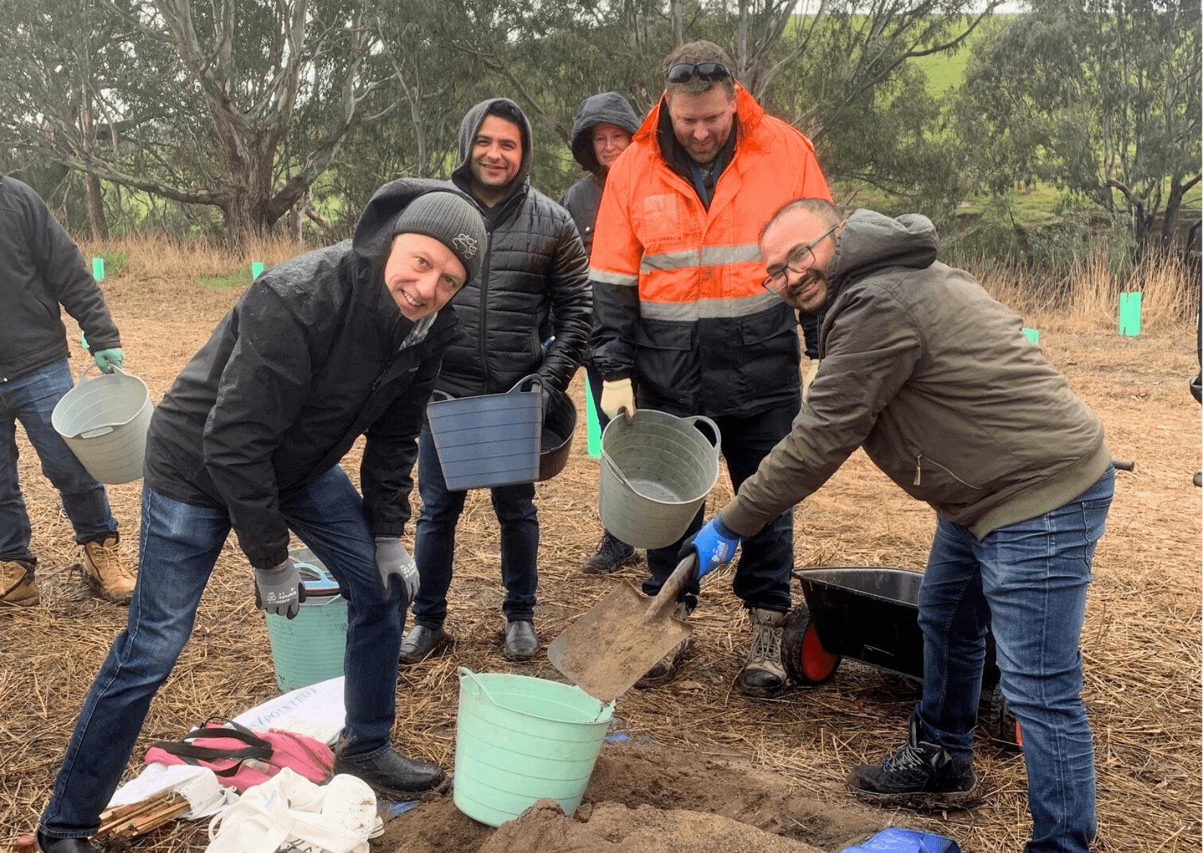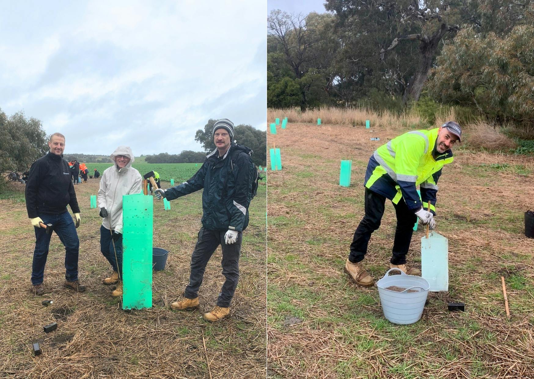 Fred Curtis, Managing Director VITRONIC Australia, helps planting trees.