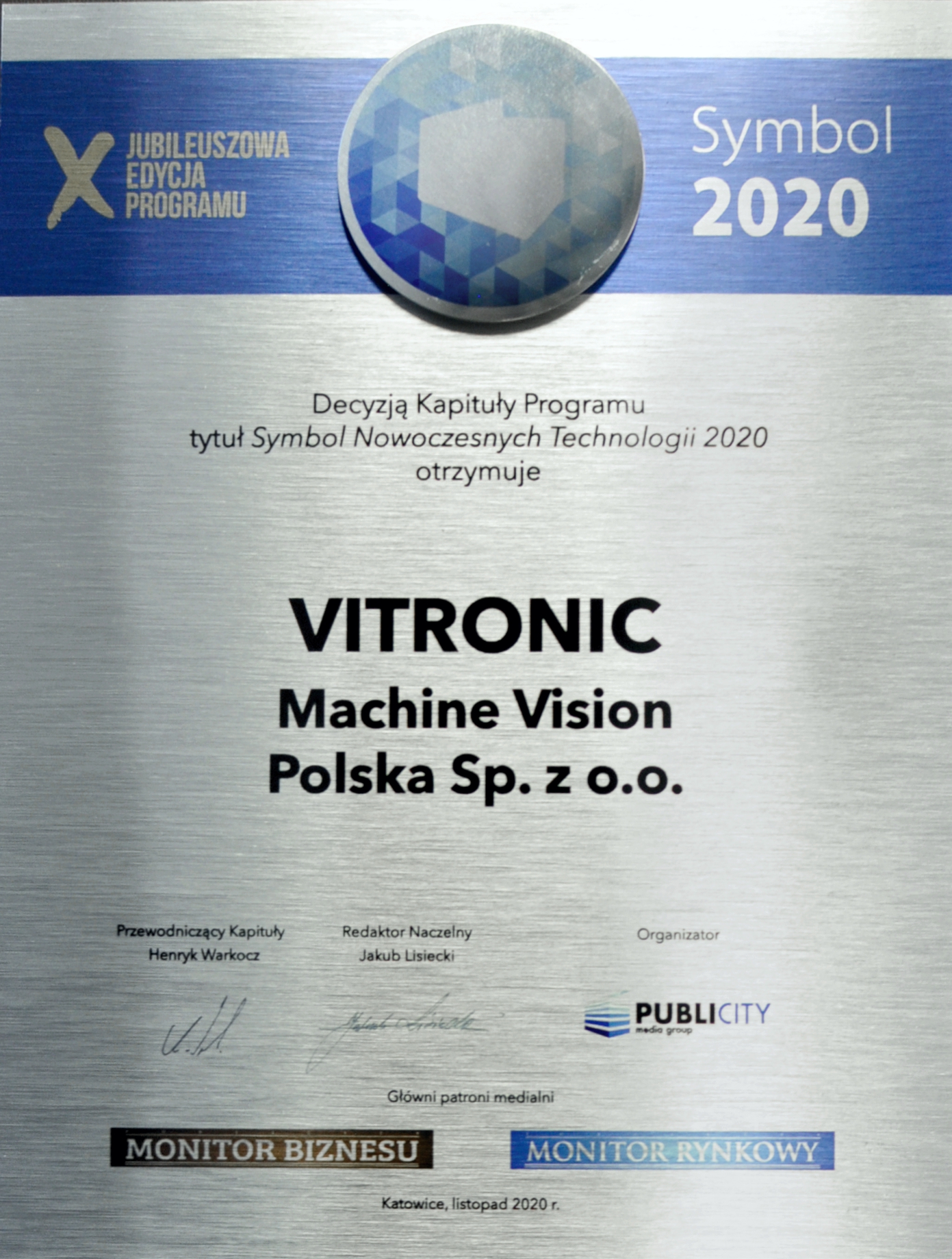 At the end of a turbulent but yet successful year 2020, VITRONIC’s Polish subsidiary has been recognized for its achievements by winning the 2020 Symbol award. Conferred by the Chapter of the Symbol Program, the prestigious nationwide accolade has been awarded annually since 2011 and celebrates innovative achievements in the field of vision technologies.